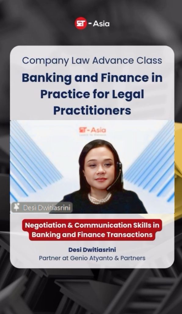 We were honored to have our partner Desi Dwitiasrini speak at ET Asia on the topic of Negotiation and Communication Skills in Banking and Finance Transactions on 22 October 2025. The session highlighted practical strategies for navigating complex financial deals and fostering effective stakeholder engagement.